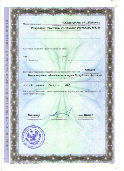 Адрес местонахождения образовательной организации* Республика Дагестан, город Буйнакск, улица Салаватова, 56