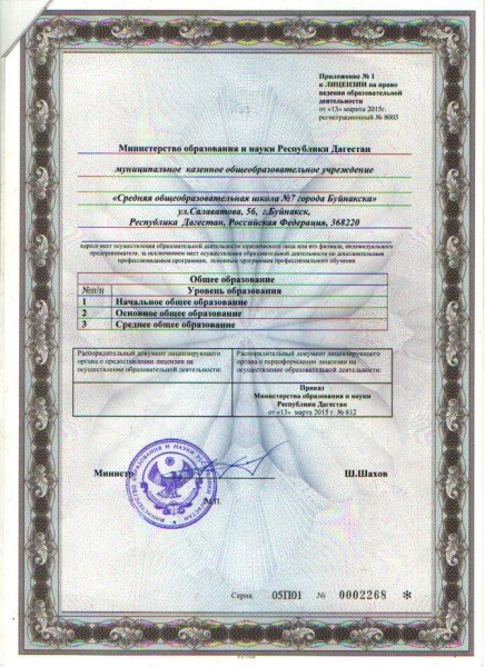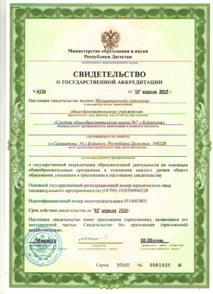 Полное наименование образовательной организации* Муниципальное казенное общеобразовательное учреждение "Средняя общеобразовательная школа №7 города Буйнакска"